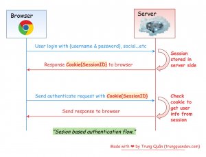 Mình copy cái ảnh này nhé. Cảm ơn tác giả 😀 Thường thì chúng ta vẫn làm như này đúng không nào, ok, chẳng vấn đề gì 😀 Cơ mà giờ mà sau này chúng ta phát triển thêm cho các Mobile Apps, TV Apps,… thì chẳng lẽ lại dùng cách trên @@ cơ mà có phải trình duyệt đâu mà có Session với Cookie.