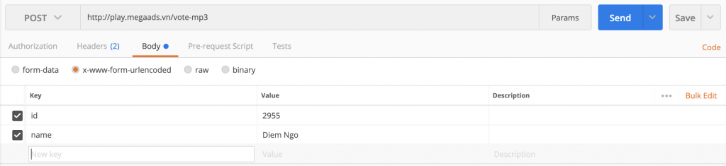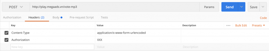 - Với request các request POST, PUT, PATCH,… ta có thể gửi lên các params ở tab Headers, Body
